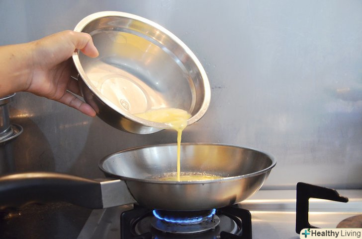 Вилийте яєчну суміш в сковороду і залиште. Увімкніть високу температуру на ваш розсуд.