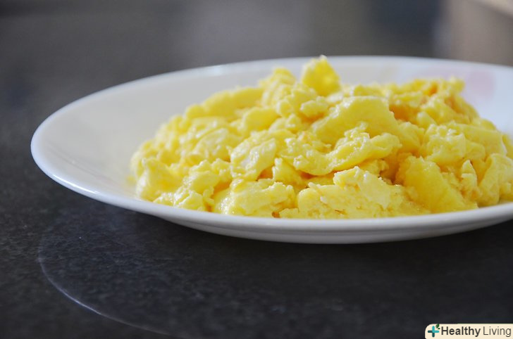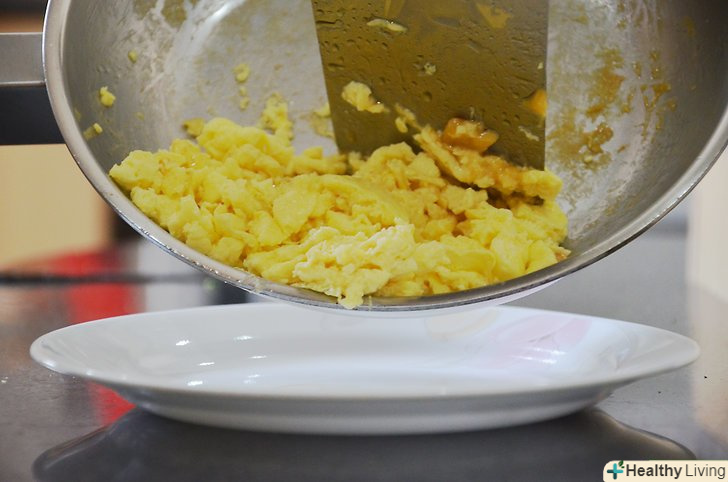 Дістаньте яєчню з сковороди, поки вона ще трохи прозора і м'яка. Якщо ви будете чекати повної готовності, яйця пересмажаться до моменту подачі на стіл.
