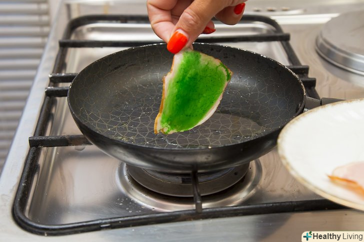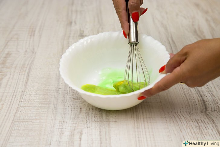 Додайте молоко і харчовий барвник.вам знадобиться 1 чайна ложка молока і 1 крапля харчового барвника. Змішайте всі інгредієнти разом, щоб у вас вийшла суміш однорідної консистенції і кольору.- Ви також можете використовувати зелений харчовий барвник, щоб отримати яскравий відтінок зеленого.[6]