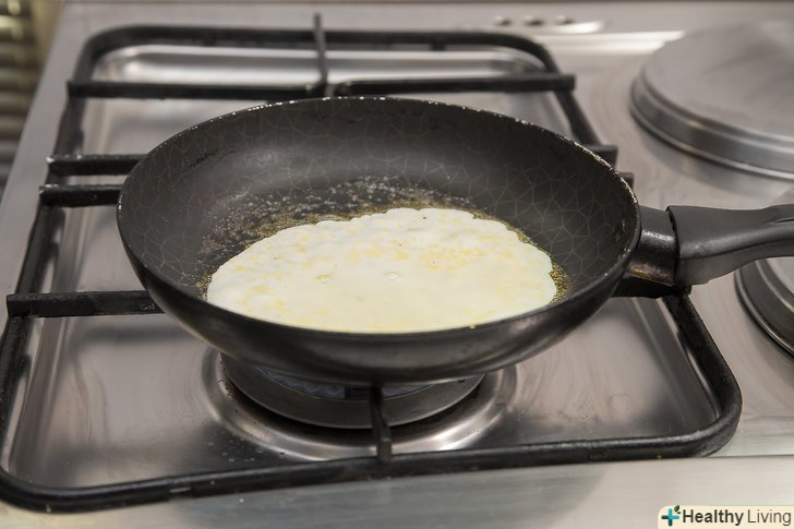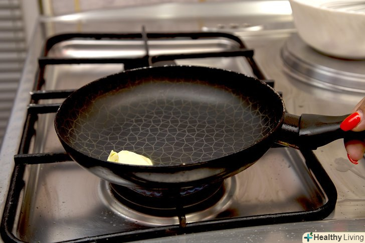 Розігрійте сковороду, помістивши в неї вершкове або рослинне масло.поставте сковороду на плиту. Додайте 1/2 столової ложки вершкового масла або масла каноли. Увімкніть плиту на середній вогонь. Зачекайте, поки вершкове масло розтане, або рослинне почне шипіти.- Нахиляйте сковороду з боку в бік, щоб вся її поверхня була покрита розтопленим маслом.