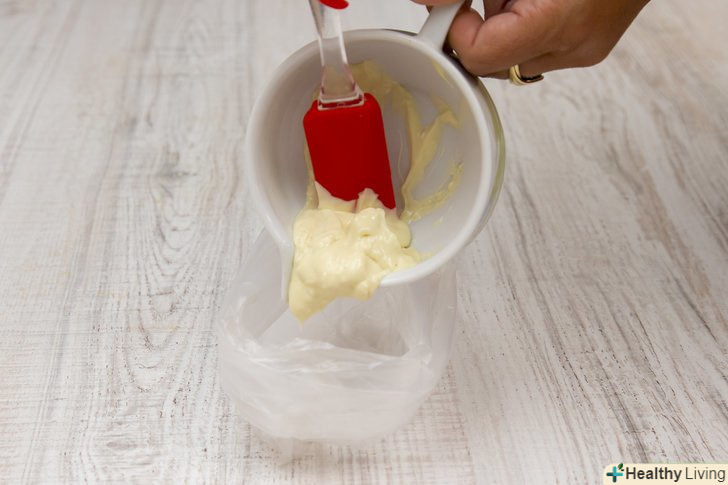 Налийте розтоплений шоколад в кондитерський мішок.обережно натягніть краї кондитерського мішка на краї чашки. Вилийте розтоплений шоколад в кондитерський мішок. Зав'яжіть його. Чи не відрізайте кінчик кондитерського мішка.- Якщо у вас немає кондитерського мішка, ви можете використовувати поліетиленовий пакет.