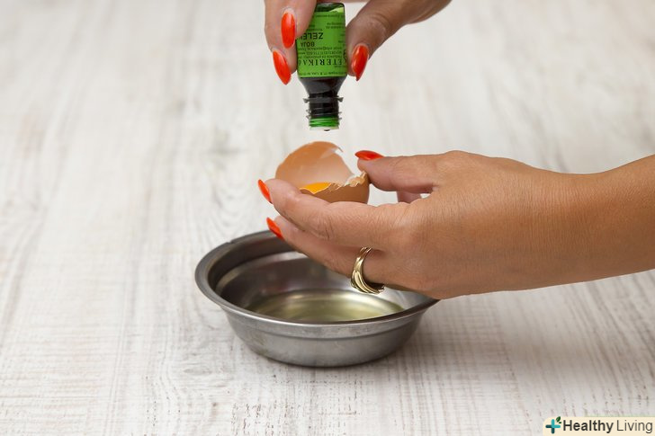 Додайте в жовток одну краплю харчового барвника.залиште жовток в шкаралупі або обережно тримайте його в руці. Ви також можете покласти його в блюдце. Додайте до жовтка 1 краплю зеленого харчового барвника. Рівномірно розподіліть його по всьому жовтку. Робіть це дуже акуратно, не тисніть на жовток, щоб він не розтікся.- Якщо у вас не виходить додати барвник до жовтка, ви можете додати його до білка. У вас вийдуть видозмінені зелені яйця з шинкою.[4]