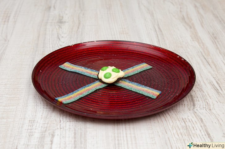 Помістіть шоколадне драже M amp; Ms зеленого кольору зверху.якщо у вас немає драже Mamp;Ms зеленого кольору, ви можете використовувати Skittles. Цукерки повинні бути зеленого кольору, інакше вам не вдасться приготувати зелені яйця з шинкою.