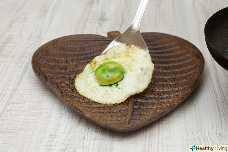 Перекладіть яйце на тарілку.коли яйце буде готове, за допомогою лопатки перекладіть його на тарілку. Лопаткою підніміть яйце і покладіть на тарілку.- Щоб прискорити процес приготування, накрийте сковороду кришкою.