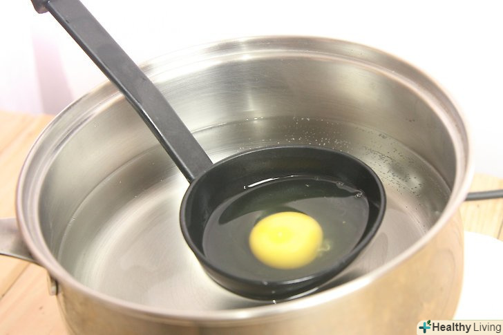Розбийте яйця і помістіть їх в киплячу на повільному вогні воду. [3] Розбийте кожне яйце окремо в кухлик або столову ложку, і опустіть яйце обережно на дно каструлі. Посуньте яйця так, щоб вони прикріпилися до дна. Нехай готуються рівно 1 хвилину.- Додавайте яйця в киплячу на повільному вогні воду, по одному за раз.