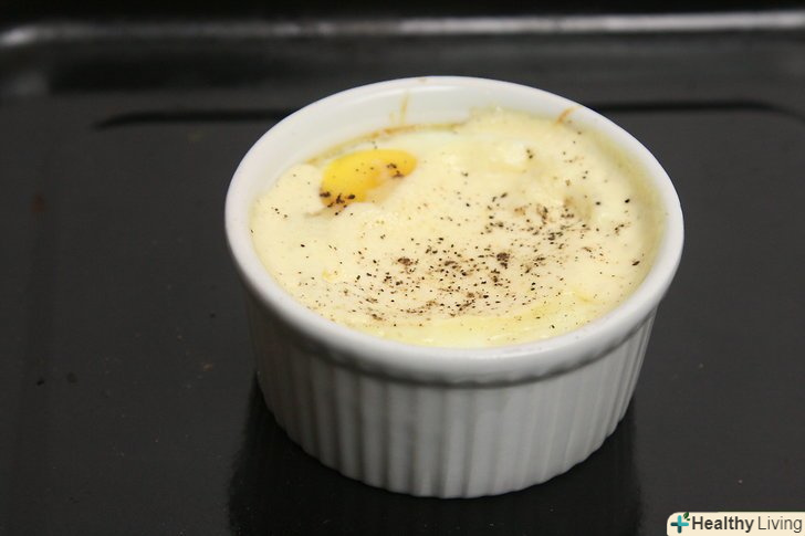 Запікайте 12-15 хвилин. помістіть яйця в попередньо розігріту духовку до тих пір, поки білки не схопляться. Запам'ятайте, що, незважаючи на це, жовтки повинні залишатися рідкими.