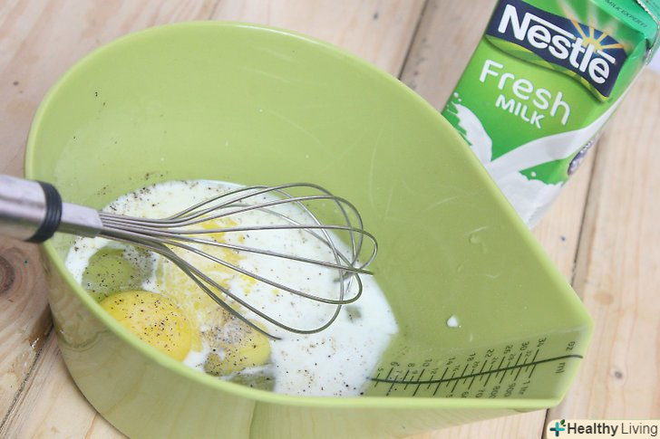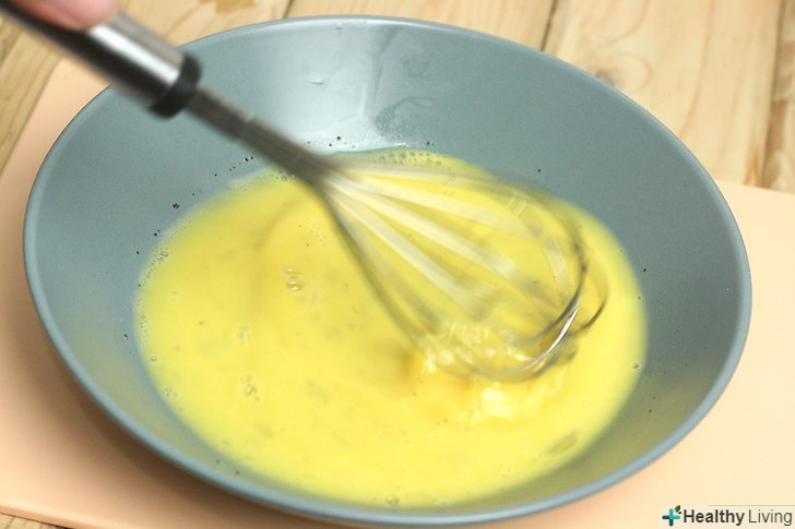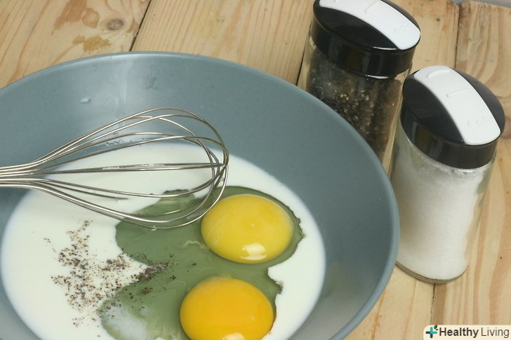 Збийте разом яйця, молоко, сіль і перець. розбийте яйця в окрему миску і додайте молока, солі і перцю. Збивайте все це віночком до тих пір, поки інгредієнти не перемішаються досить добре, і маса не візьметься легкої піною.- Яйця-єдиний невід'ємний інгредієнт, так що можете вирішувати на свій смак, додавати молоко, сіль і перець. Варто розуміти, що молоко зробить смак більш багатим.