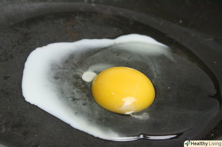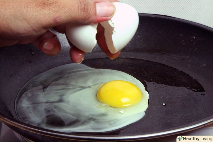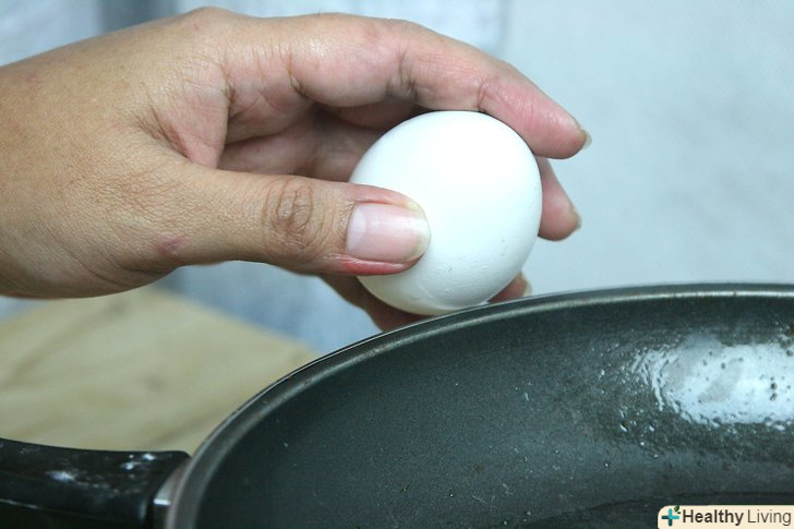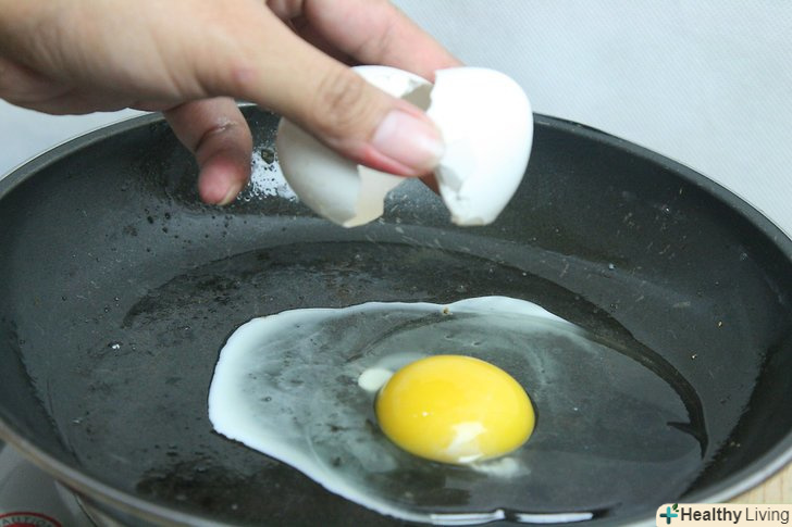 Розбийте яйця в сковороду. обережно розбийте шкаралупу об край сковороди або про стільницю. Розбийте яйця і вилийте їх прямо в сковороду.- Готуйте по одному яйцю за раз – так білки різних яєць не змішаються один з одним.