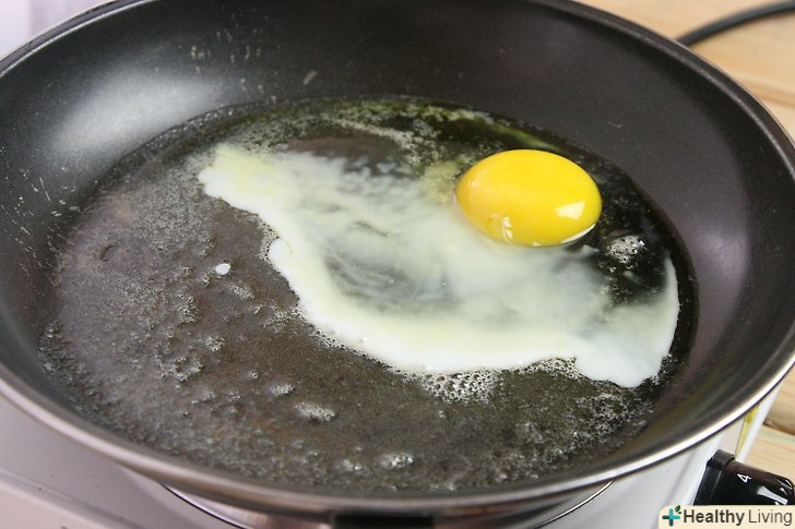Візьміть середню сковороду і нанесіть на неї антипригарний спрей. поставте її на середній вогонь на кілька хвилин.- Якщо хочете, можете використовувати 2 чайних ложки (10 мл) вершкового масла або маргарину замість антипригарного (кулінарного) спрею, Але знайте, що спрей менше впливає на смак і робить приготовлену їжу дещо здоровішою.