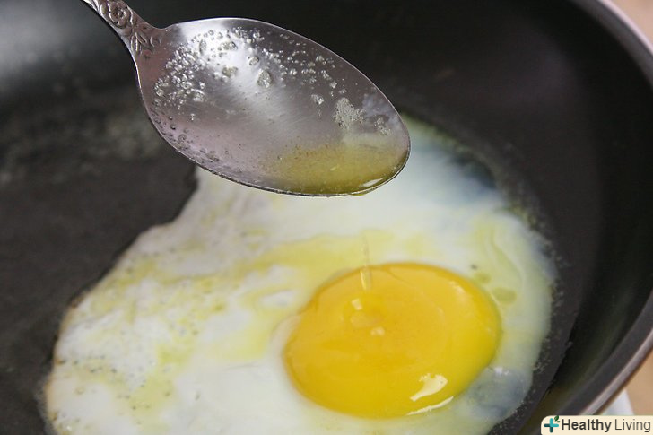 Налийте гаряче масло поверх яєць і готуйте далі на помірному вогні. обережно ложкою зберіть гаряче масло зі сковорідки, полийте їм яйця зверху, і нехай готуються ще одну додаткову хвилину.- Яєчний жовток буде частково готовим, однак, не повністю твердим.