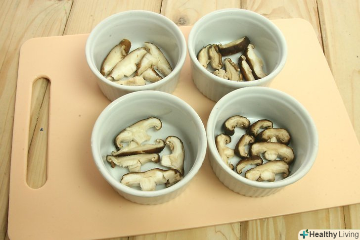 Розділіть гриби на чотири горщики. рівномірно розподіліть гриби по чотирьох окремих горщиках.- Гриби шиітаке-традиційний вибір, але ви можете замінити їх своїми улюбленими, або більш доступними видами, якщо хочете.