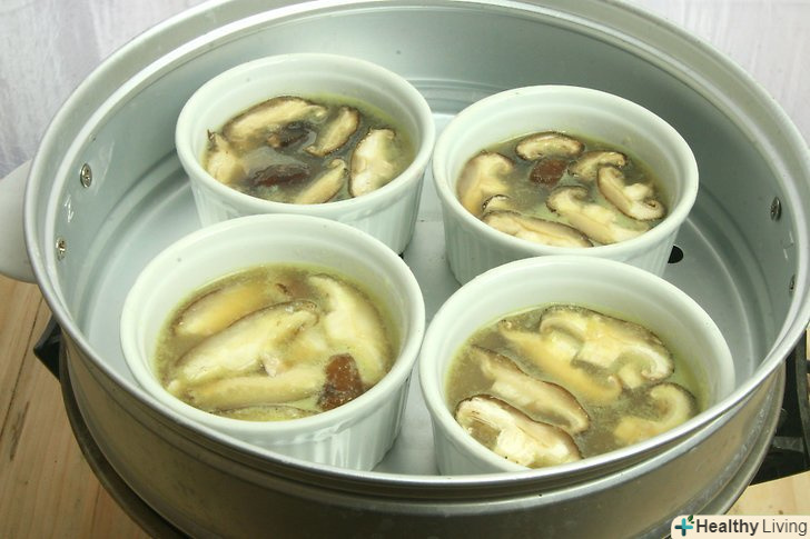 Поставте горщики в пароварку. переставте горщики в пароварку, розставте їх в один, рівномірний шар. Накрийте і готуйте 12 хвилин. [6]- Якщо у вас є лоток для пароварки, помістіть горщики в нього і тримайте їх над водою. Якщо ні, ви можете поставити їх у воду, але зробіть так, щоб кипляча вода не заливалася всередину горщиків.