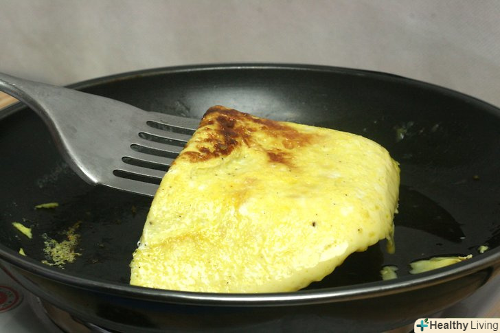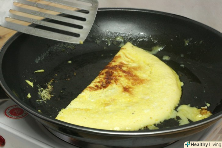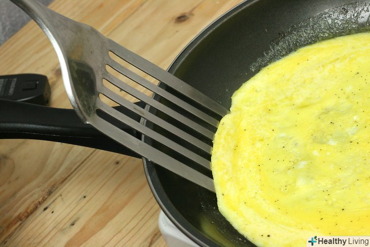 - Періодично перевертайте яйця, роблячи паузу в 20 секунд між кожним перевертанням. Не рухайте омлет занадто часто. В іншому випадку, він може розірватися на маленькі шматочки, які буде незручно їсти.