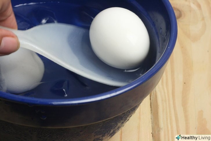 Помістіть яйця в холодну воду. як тільки ви закінчили їх варити, витягніть яйця з окропу шумівкою і замочіть в холодній воді з льодом.- Нехай яйця полежать хоча б 10 хвилин в крижаній воді.