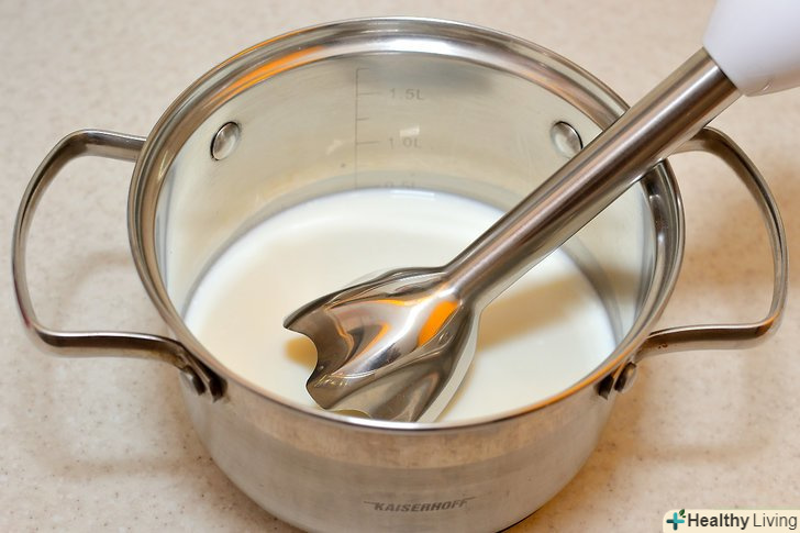 Нагрійте молоко до температури 85°C. візьміть дві каструлі, які вставляються одна в іншу, щоб вийшла водяна баня . Так молоко не пригорить, і вам потрібно буде лише зрідка його помішувати. Якщо ви не можете зробити водяну баню, постійно стежте за молоком, помішуючи його. Якщо у вас немає кухонного термометра, то знайте, що при температурі 85°С молоко починає пінитися. Настійно рекомендується нагріти молоко до температури 40-100 °С, особливо якщо ви плануєте готувати йогурт постійно. [1]- Ви можете використовувати будь-який вид молока, і незбиране молоко, і молоко жирністю 1%, 2%, знежирене молоко, соєве молоко і так далі. Ультрапастеризоване молоко обробляється при дуже високих температурах, а це руйнує білок. Білок, в свою чергу, необхідний бактеріям для перетворення молока в йогурт. Деякі кулінари відзначають труднощі в приготуванні йогурту з ультрапастеризованого молока.