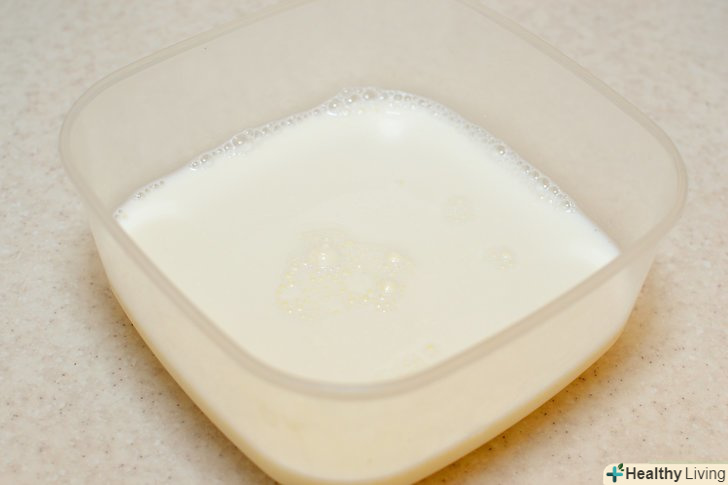 Розлийте суміш по контейнерах. налийте молоко в чистий контейнер або контейнери. Щільно закрийте кожен контейнер кришкою або харчовою плівкою. [3]- Ви також можете скористатися скляними ковпаками, але це не обов'язково.