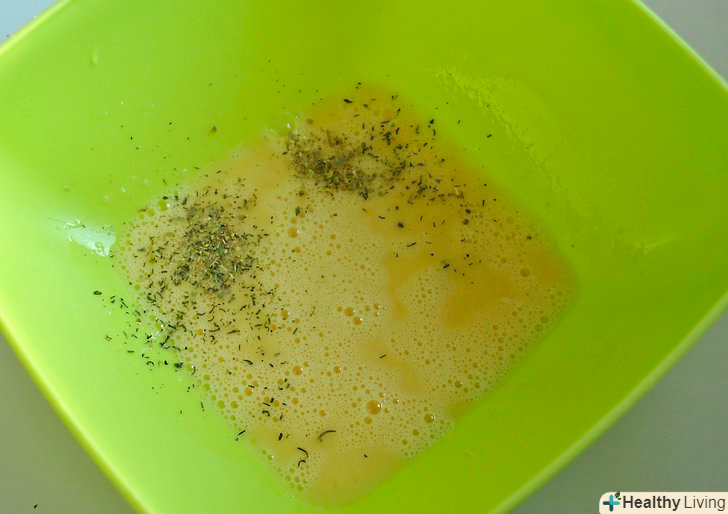Додайте спеції або приправи. зараз для цього саме час. Спеції повинні бути подрібненими в пластівці, щоб ви могли додати їх в яєчну суміш. Потім ретельно розмішайте яєчну суміш, щоб рівномірно розподілити приправи.- Якщо використовуються приправи не в подрібненому вигляді (наприклад, свіжа зелень), можна додати їх, коли яйця приготуються.