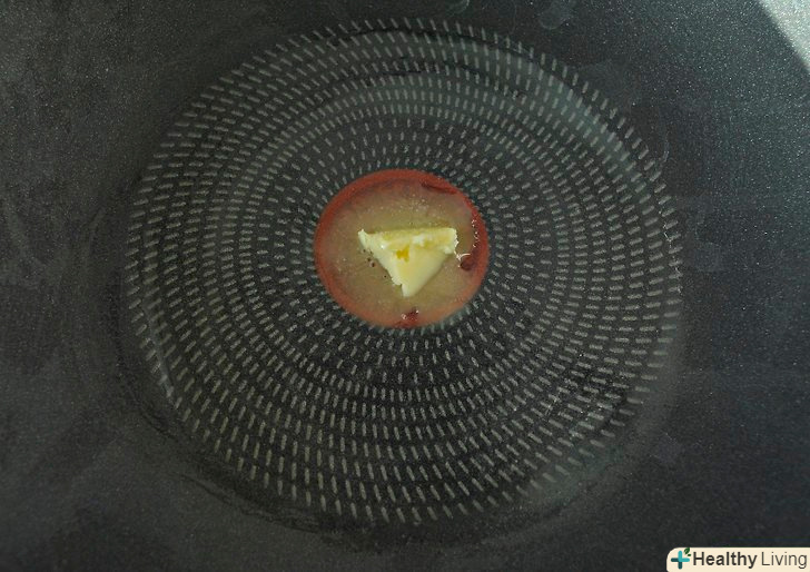 Нагрійте сковороду з довгою ручкою на середньому вогні. змастіть сковороду вершковим маслом і перевірте, щоб яйця не приставали до її поверхні. Використовуйте мінімальну кількість масла, інакше яйця будуть в ньому плавати! Як тільки сковорода почне шипіти, саме час почати готувати яйця.- Не використовуйте рослинне масло для змащення сковороди, інакше смак яєць зміниться. Якщо вас турбує вміст жиру у вершковому маслі, спробуйте взяти низькокалорійний продукт, наприклад маргарин.