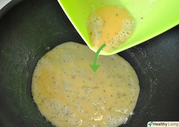 Вилийте яєчну суміш на сковороду. Не хвилюйтеся з приводу того, покривають чи яйця всю поверхню сковороди. Просто вилийте їх на дно.