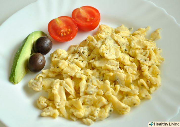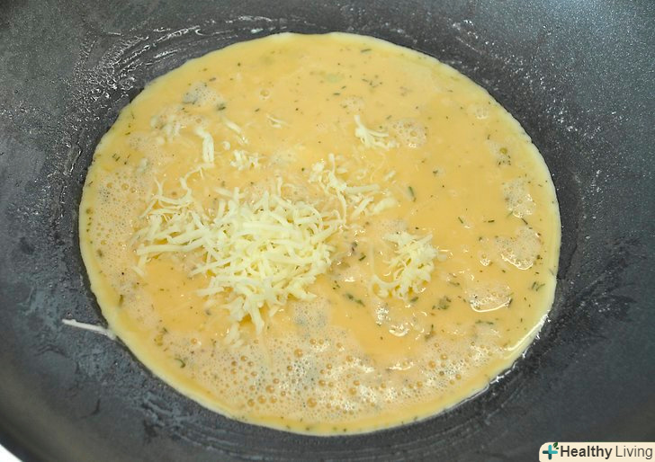 Додайте будь-які інші інгредієнти. додайте інші інгредієнти, як тільки виллєте яйця на сковороду, такі як спеції крупного помелу, овочі, сир або будь-які продукти на свій розсуд. Намагайтеся не пересмажити яєчню.