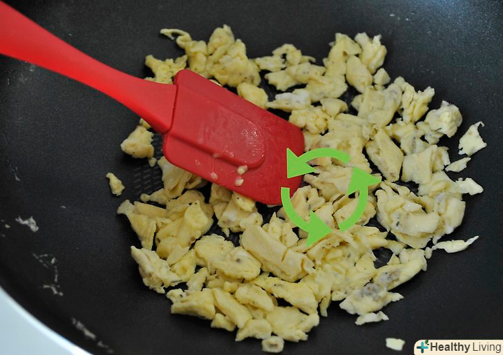 Візьміть лопатку і ретельно перемішайте. акуратно перемішайте яйця на сковороді, щоб отримати добре просмажене блюдо. Лопаткою можна розділяти яєчню на шматочки, що спростить процес приготування. Як тільки яйця приготуються з одного боку, переверніть і обсмажте їх з іншого.- Словосполучення "ретельно просмажена" щодо яєчні-базіки може мати різне значення. Деякі люди вважають за краще рідку яєчню, в той час як іншим подобаються добре просмажені яйця. У будь-якому випадку яйця не повинні "текти", і в цьому полягає різниця між "трохи рідкої" і недожаренной яєчнею, причому недожаренние яйця можуть стати причиною захворювання.