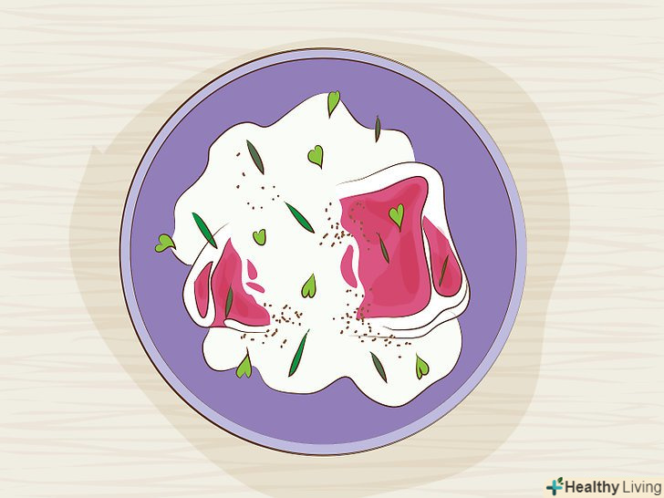 Приготуйте маринад для м'яса. щоб м'ясо вийшло м'яким і ніжним, замочіть його в кислому молоці. Вийде прекрасний маринад для курки, стейка або риби, якщо змішати кисле молоко з розмарином, чебрецем, часником і/або чорним перцем. [8]- Для рецептів гострих страв кисле молоко можна додавати в овочеву або м'ясну запіканки, а також в тушковане м'ясо, щоб отримати кремову або сирну підливу. Але дійте обережно, так як кисле молоко може перебити смак страви.