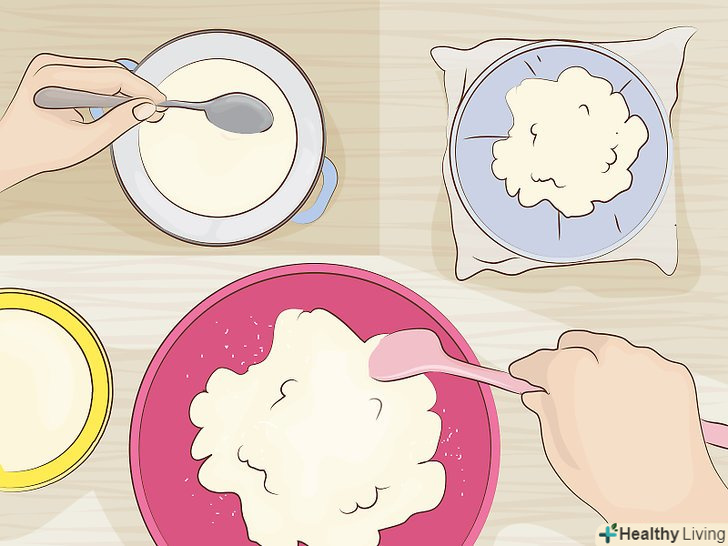 Приготуйте сир. з кислого молока можна зробити домашній сир. Необхідно підігріти його на вогні середньої інтенсивності до 85 °C, зняти з плити і додати трохи оцту. Потім процідіть суміш через друшляк, накритий марлею, щоб на поверхні залишилися шматочки згорнувся молока. Потім для соковитості в масу слід додати сіль і трохи молока або вершків. [9]- Зберігайте сир в холодильнику і з'їжте його протягом тижня.