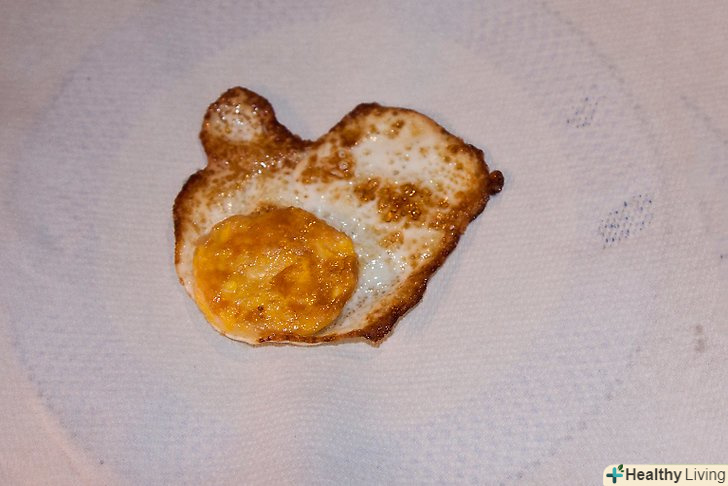 Дайте стекти зайвому жиру. використовуйте кухонний рушник або паперові Серветки. Робіть це швидко, поки яйце не втратило свою легкість.