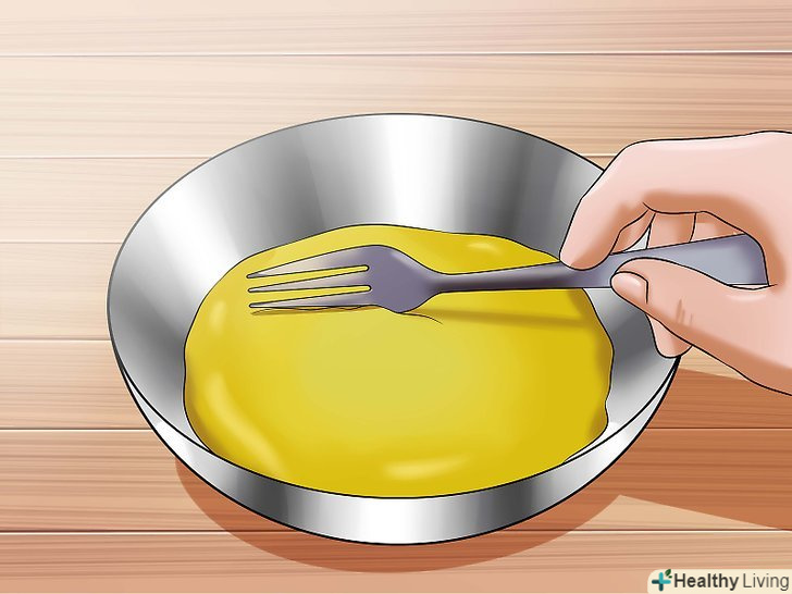 Збийте яйця. використовуйте вилку або віночок, щоб збити яйця, незалежно від того, використовуєте ви цілі яйця або розділені білки і жовтки.- Крім того, можна збити яйця обережно поклавши їх в кухонний комбайн або блендер і змішуючи їх на середній швидкості протягом приблизно хвилини.