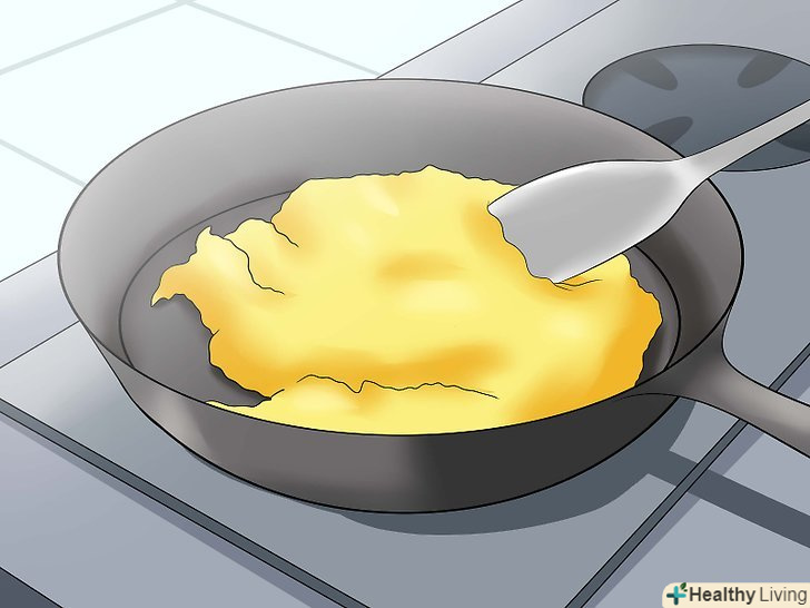 Збовтайте яйця. розбийте яйця і злегка збийте їх виделкою або віночком. Вилийте суміш в сковороду і готуйте протягом декількох хвилин, часто помішуючи, поки яйця не встановляться, але все ще м'які.- Використовуйте сковороду і не готуйте яйця, додаючи рослинне масло або вершкове масло. Жири знизять термін придатності, і яєчний порошок швидше прогіркне.