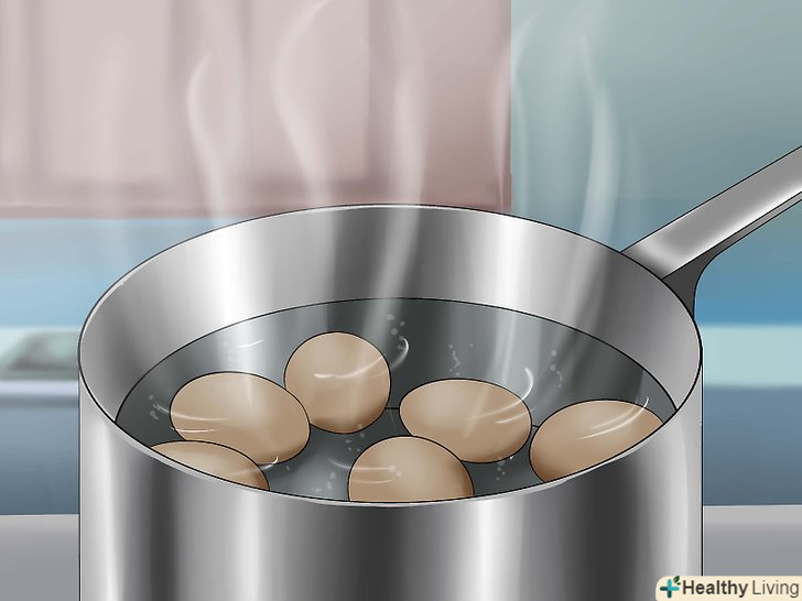 Альтернатива, яйця круто. приготуйте яйця в киплячій воді протягом 10-12 хвилин. Охолодіть варені яйця, очистіть їх і наріжте білки і жовтки на дрібні шматочки. Ви можете або розділити білки і жовтки або тримати їх разом.- Для яєць круто, покладіть яйця в каструлю і залийте їх близько 2.5 см.холодної води. Поставте каструлю на плиту на середній вогонь. Як тільки вода досягає кипіння, вимкніть вогонь і накрийте каструлю кришкою. Нехай яйця закінчать приготування в гарячій воді протягом 10-15 хвилин.