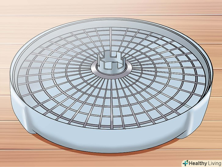 Підготуйте лотки дегідратора. покладіть пластикові з ободом диски дегідратора в кожен лоток дегідратора, який ви збираєтеся використовувати.- Це особливо важливо, якщо ви працюєте з сирими яйцями, так як неглибокий обід запобіжить рідина від розтікання в сторону лотка.