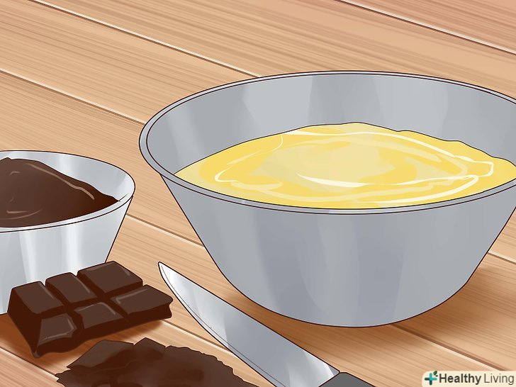 Змішайте вершки з шоколадом. змішайте склянку жирних вершків з 50 – 60 г шоколаду. Виберіть темний або молочний шоколад відповідно до ваших смаків. Натріть шоколад на тертці або купіть тертий шоколад.- В крайньому випадку, можна використовувати какао порошок, але какао масло, що міститься в шоколаді, виступає в ролі стабілізатора і допомагає збитим вершкам тримати форму.