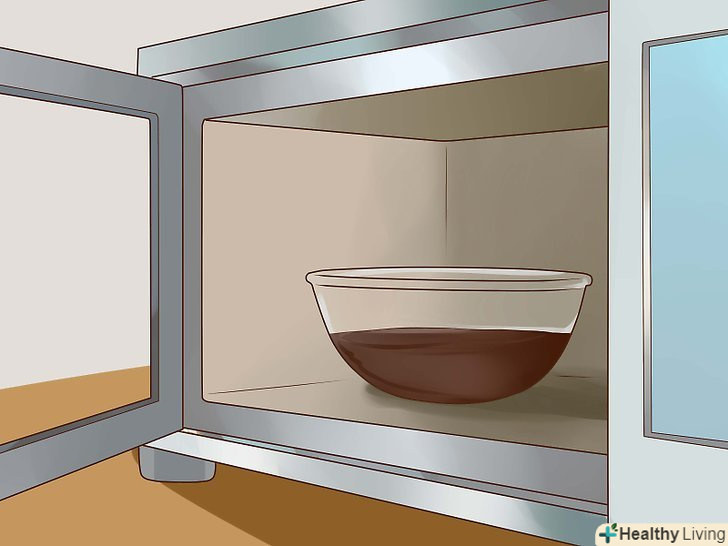 Розтопіть шоколад. поставте суміш вершків і шоколаду в мікрохвильову піч приблизно на 30 секунд і розмішайте. Продовжуйте нагрівати суміш - по 15 секунд за раз – і розмішувати до тих пір, поки шоколад повністю не розтане. Суміш на початку буде зернистою, але поступово досягне однорідної консистенції.- Якщо ви вибрали темний шоколад, вам доведеться особливо ретельно змішати інгредієнти, щоб не було шматочків. Можна використовувати блендер, щоб отримати ідеально однорідну консистенцію.