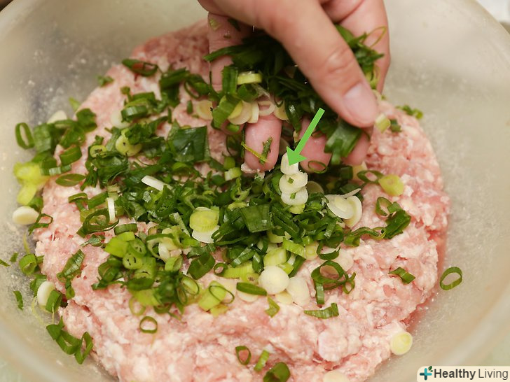 Змішайте м'ясо з приправами. можна обійтися покупкою 600 грам ковбасного фаршу. Однак він може виявитися занадто жирним, тому деякі кухарі вважають за краще суміш з ковбасного і свинячого фаршу в співвідношенні 50/50. Можна не тільки поєднувати різні смаки приправлених ковбасок, а й вибрати звичайні сосиски, присмачивши їх спеціями і зеленню. (Дивіться вище можливий список інгредієнтів).- Або ж придбайте сирої ковбасний фарш. Просто розріжте оболонку, щоб відкрити упаковку, і пересипте вміст в миску.