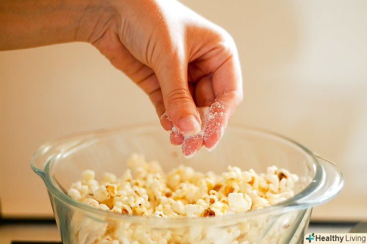 Приправте попкорн сіллю. добре струсіть і насолоджуйтеся. Сіль для попкорну зазвичай продається поруч з попкорном у відділі легких закусок.