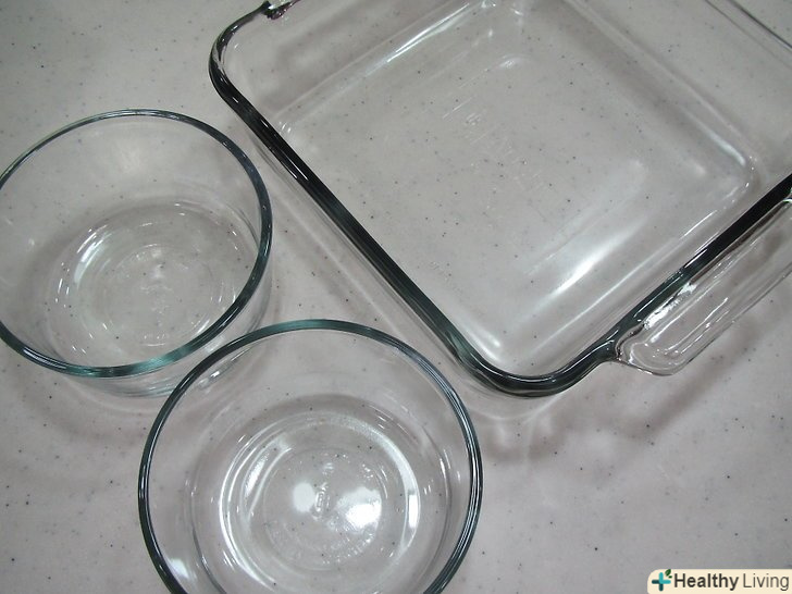 Спробуйте мити посуд рідиною для миття посуду і харчовою содою. щоб видалити зі скляного посуду для випічки сліди жиру, насипте на дно харчової соди і капніть трохи рідкого мила для посуду. Залиште блюдо відмокати в теплій воді приблизно на 15 хвилин, а потім вимийте м'якою мочалкою. [10]