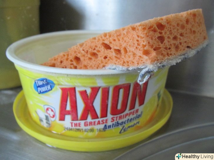 Мийте жароміцний скляний посуд м'якою губкою, яка не залишає подряпин. з часом подряпини на склі можуть спровокувати появу тріщин і пошкоджень на посуді. Щоб уникнути утворення подряпин чистіть скляний посуд м'якими нейлоновими губками. [9]- Щоб видалити сліди запеченої їжі, попередньо замочуйте блюдо в теплій воді, а тільки потім мийте. Це допоможе розм'якшити їжу і помітно полегшить процес очищення посуду.