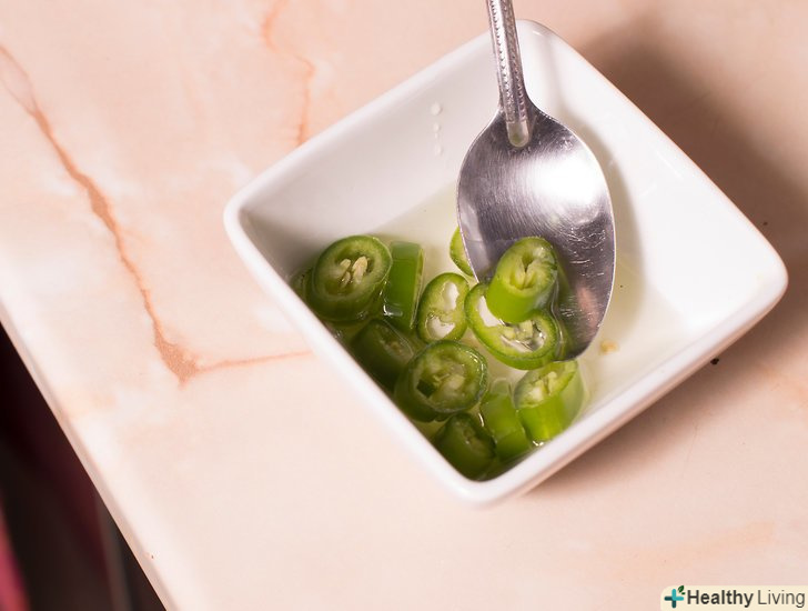 Розігрійте масло у відповідній сковороді.спробуйте використовувати невелику чавунну сковороду. Розігрійте масло, потім додайте перці чилі і готуйте їх протягом приблизно 10 хвилин.