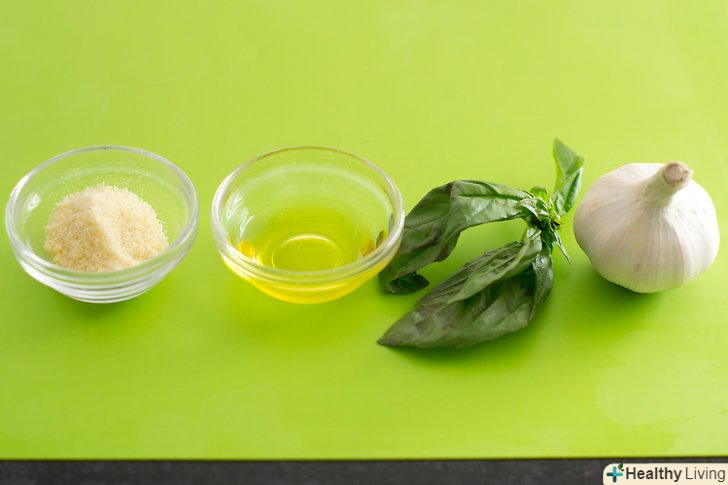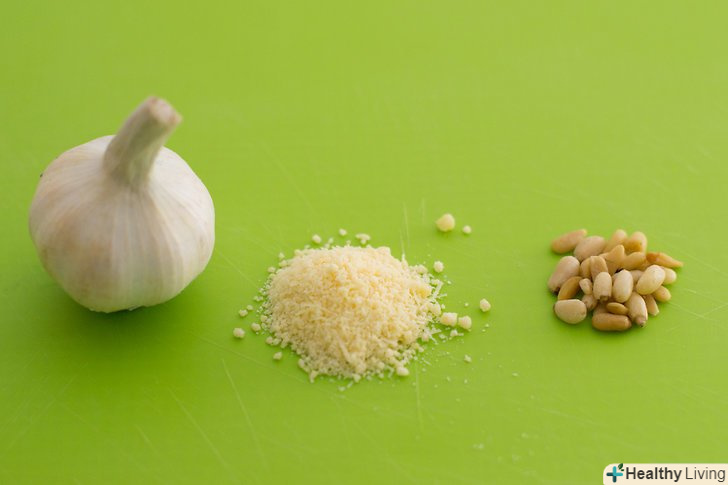 Наріжте часник, сир і горіхи (за бажанням).попередня нарізка і подальша обробка в кухонному комбайні допоможуть вам в результаті приготувати дуже ніжний песто.