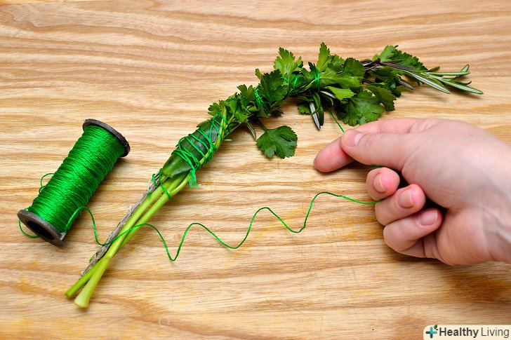 Зав'яжіть пучок кухонною ниткою і залиште хвостик, який ви зможете використовувати, щоб покласти пучок в каструлю.
