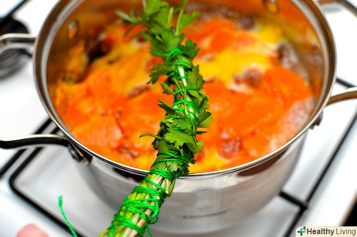 Киньте букет гарні в каструлю для приготування для додання аромату супів, рагу, бульйонів, запіканок і т. д.