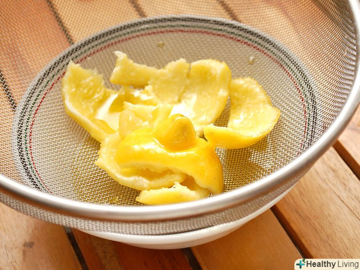 Очистіть від шкірки кожен лимон.викиньте шкірку, на якій залишилися шматочки м'якоті лимона. Для приготування потрібна тільки шкірка лимона, але ніяк ні м'якоть.