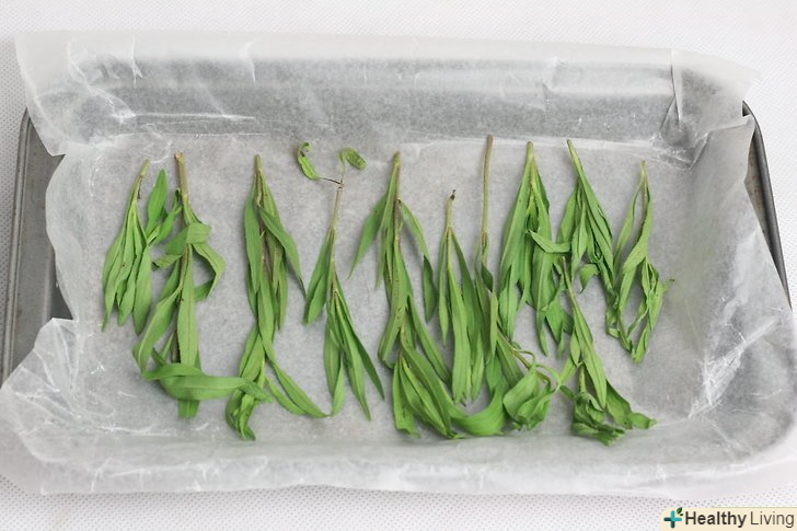 Покладіть лист в самий нижній рівень духовки. Частіше перевертайте трави. Коли ті стануть трохи ламкими, витягніть лист з духовки.