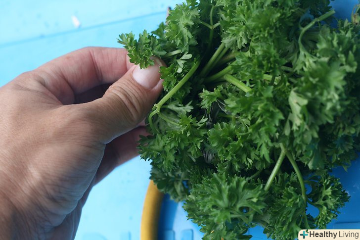 Помийте зелень, якщо треба. деякі трави дійсно необхідно спершу промити, щоб позбутися від фрагментів бур'янів, землі і т.д. промивати треба прохолодною водою, потім обов'язково потрібно легенько струсити зелень, щоб позбутися від зайвої вологи.- Від усіх зіпсованих листочків краще позбутися.
