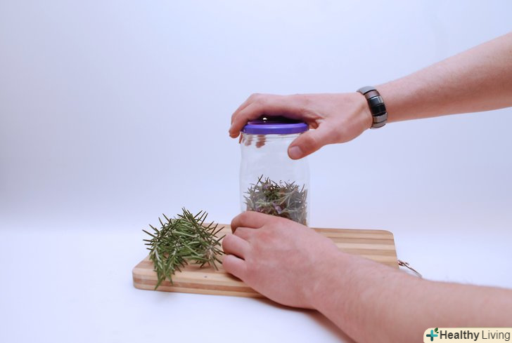 Помістіть дрібно нарізані листя розмарину в скляну банку.