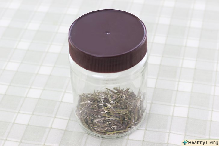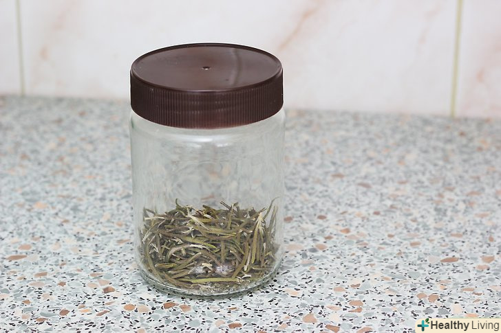 Пересип розмарин в банку для зберігання.після того, як витягнеш розмарин з духовки, дай йому повністю охолонути. Візьмися за кінці пергаменту, сформуй трубку і висип розмарин в чисту скляну банку. Щільно закрути банку і бережи в сухому, темному місці, наприклад, на кухні.
