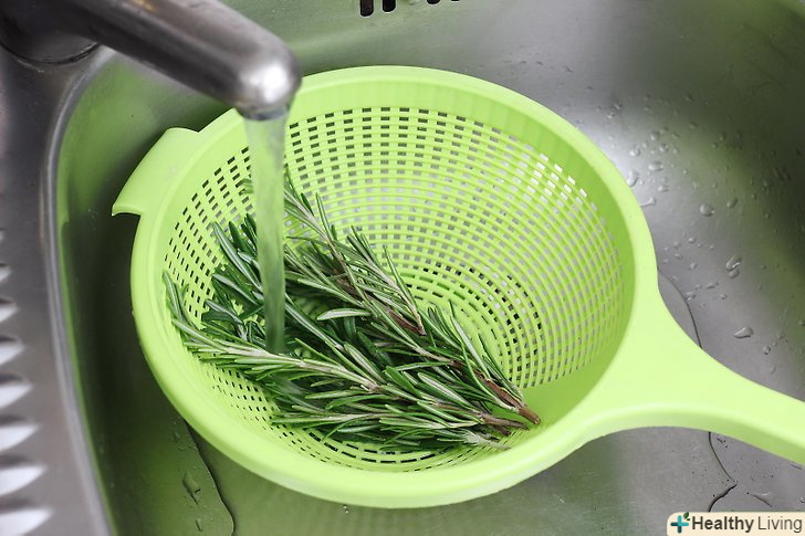 Підготуй розмарин.Замочи розмарин в холодній воді, щоб позбутися від бруду і смітинок. Розклади на паперових рушниках, щоб увібрати зайву вологу. Видали все сухе листя або стебла.