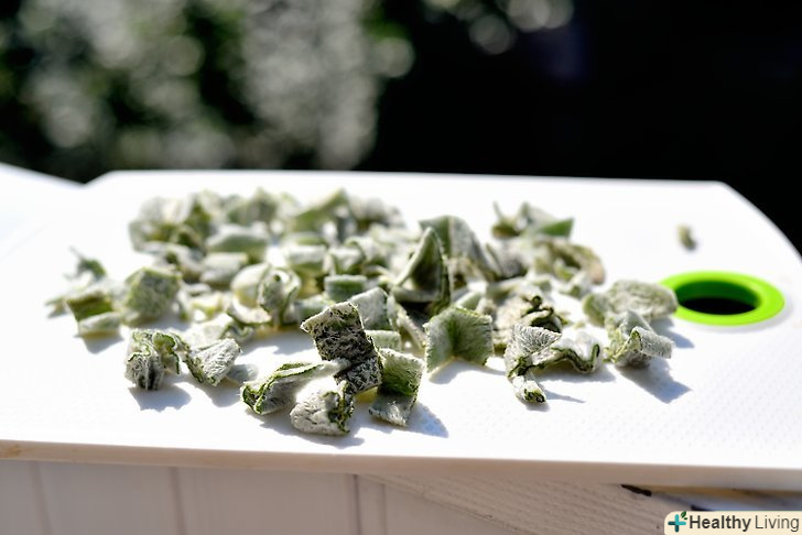 Подрібніть листя шавлії пальцями.якщо ви збираєтеся використовувати шавлія в якості приправи, листя необхідно подрібнити. Розітріть в руці окремо кожен лист. Отриману масу можна зберігати і використовувати як приправу.[32]- Якщо ви хочете зберігати шавлію у вигляді пучків, не подрібнюйте листя.