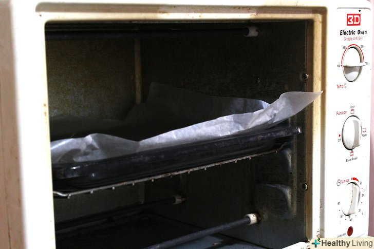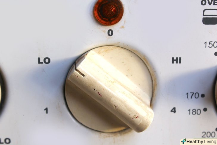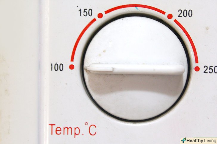 Якщо ви використовуєте електропіч, залиште дверцята відкритими.це сприятиме кращій циркуляції повітря, що має значення при сушінні трав. Також це не дозволить температурі в печі підніматися занадто високо.[28]- Якщо у вас газова духовка, не відкривайте дверцята, інакше газ проникне в кухню, а це може бути небезпечно. Замість цього відкривайте дверцята кожні 5 хвилин, щоб впустити в духовку трохи повітря.